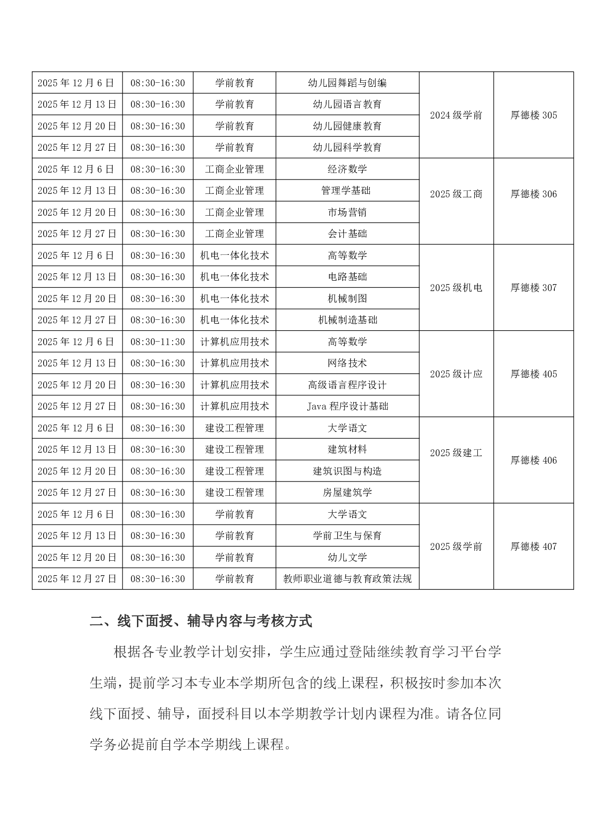 厦门兴才职业技术学院成人高等教育2025年上半年期末考试安排的通知.